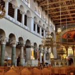 ここテッサロニキにはたくさんの教会があります。「アギオス・ディミトリオス教会」はギリシャでは最大級の教会なんですよ。ガリウス帝に処刑された聖ディミトリオスが祭られている教会です。中に入ると天井の高さと聖人たちの絵画の荘厳な雰囲気で心が洗われるよう。この教会は1917年に街全体が大火災に合い、一度全焼をしたと言われています。それから信心深い人々の力で1926年から1948年の長い年月をかけて再建されました。初期のバシリカ聖堂の様式を現代に見事に伝えています。教会の中には焼け跡から残った5枚のモザイク画が飾られています。この生き残った絵をみるだけでも当時の人々の苦労が偲ばれますね。