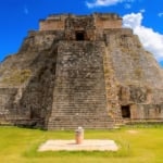 魔法使いのピラミッドは、高さ約37mの巨大なピラミッドで、東側と西側には頂上の神殿へと続く階段が配置されています。魔法使いが温めた卵から孵った小人が、一夜のうちに作り上げたという伝説から魔法使いのピラミッドと呼ばれています。