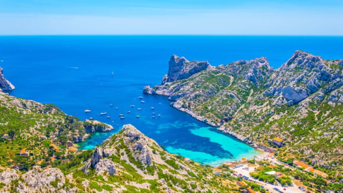 「カランク」とは深く入り組んだ入り江のこと。マルセイユからカシの街を結ぶ海岸線は、石灰岩が切り立つカランクになっており、その一帯が国立公園に指定されています。青い海と白い断崖絶壁、そして豊かな緑に彩られた景色は息をのむほど美しいですよ。フランスのみならず海外からの観光客にも大人気です。
