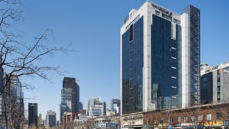 ソウル南部でも人気の繁華街江南(カンナム)エリアに位置する新論峴駅。地下鉄江南駅...