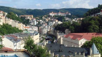 カルロヴィ・ヴァリはチェコの西部、ドイツとの国境に近い町。チェコ最大の温泉保養地...
