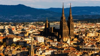 フランス中南部の街クレルモンフェランは、哲学者パスカルの誕生の地として知られています。世界遺産に登録された12世紀建造のノートルダム・デュ・ポール教会やヴォルヴィック山の火山岩で造られた聖母被昇天大聖堂など歴史的建造物が残る美しい街並が広がります。クレルモンフェラン近郊にはフランスの偉大な景勝地に認定されたピュイ・ド・ドーム山があり、山頂からは雄大なパノラマが楽しめる観光地。