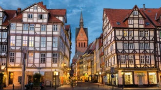メッセ(見本市)で有名なハノーファーは、ライネ川沿いにある北ドイツの都市。古くから交通の要所として発展しましたが、学術都市としても知られていて多くの教育機関があります。2000年にはここで万国博覧会も開かれました。お城のような市庁舎、世界的に有名なバロック式庭園のヘレンハウゼン王宮庭園などの観光スポットもたくさん!また,、北ドイツで最も長い歩行者天国ではショッピングも楽しめます。