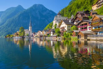 ハルシュタットは景勝地ザルツカンマーグート地方の奥にそびえる、ダッハシュタイン山...