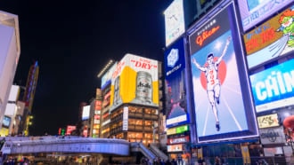 大阪の人気観光地である道頓堀には、人気ラーメン店やたこ焼き屋などの飲食店やエンタ...