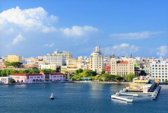 カリブ海に浮かぶプエルトリコ。首都サン・ファンはカリブ海クルーズの寄港地にもなっ...