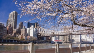 ニューヨークのルーズベルト島はマンハッタンとクイーンズ地区の間に流れるイースト川...