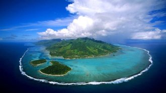 モーレア島はフランス領ポリネシアの首都があるタヒチ島の西隣りの島。周囲が約60kmのこの島は、美しいエメラルドグリーンの海に囲まれており人気のリゾートアイランドです。ダイビングやシュノーケリングではウミガメやサメ、色とりどりの熱帯魚などを見ることができます。春から夏にかけては、風があるためサーフィンも楽しむことができます。この島には8つの山々がそびえ、ありのままの自然を満喫できる観光地。